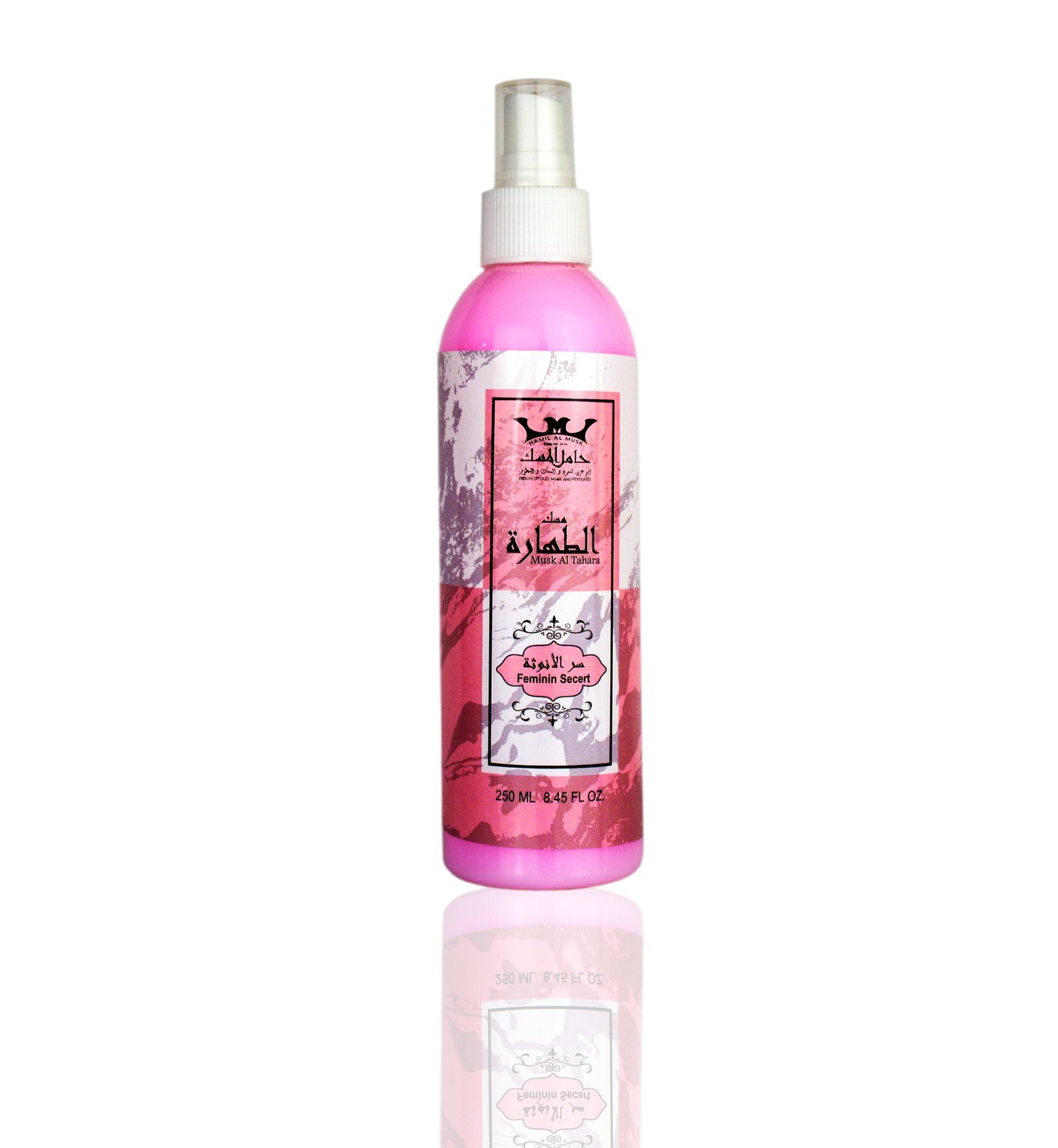 Feminine secret collection pink from hamil almusk contains body freshener, hair mist, body cream, and musk oil with amazing fragrance