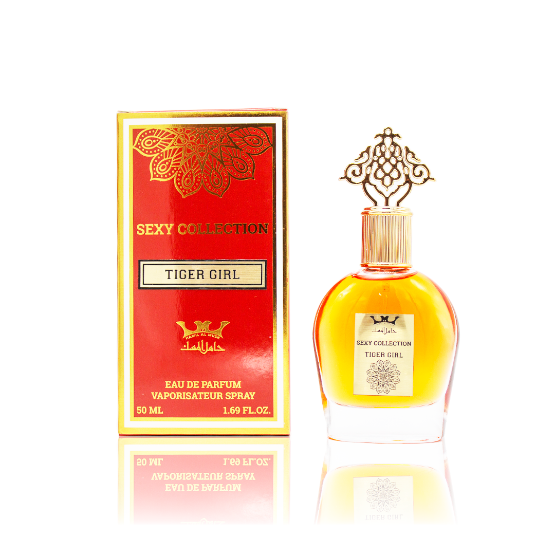 A fierce and confident fragrance that roars with bold energy. It starts with zesty citrus and tropical fruits, transitions into a heart of exotic florals, and finishes with warm musk and creamy vanilla.